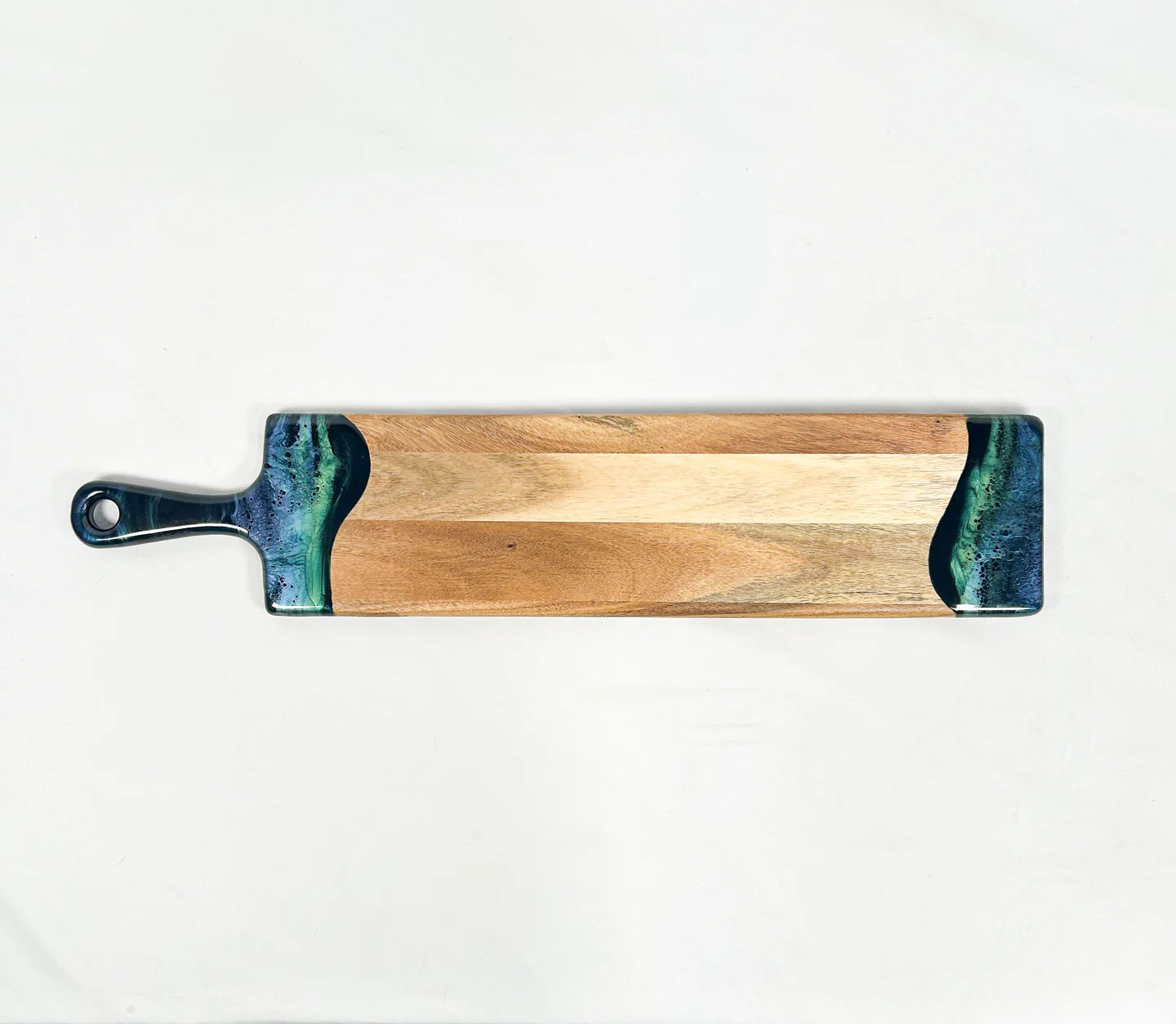 These handmade pieces are made from high quality Canadian acacia and an Eco-friendly epoxy to create a one-of-a-kind piece of serveware for your home. Each piece is hand poured in small batches by in house team of resin artists who absolutely love what they do. Perfect gift for a housewarming, wedding or maybe just a treat for yourself. Serve your favorite snacks for a girls night in, a date night with your spouse or for a get together with friends. Made in Canada.
